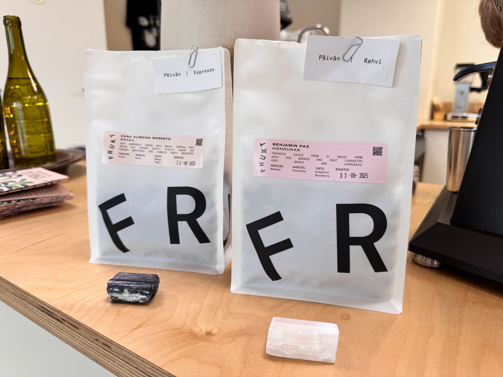 Instead I was greeted with a big smile, and after explaining how I had three hours in Turku, and had wanted to visit Frukt for a while, my fears were allayed and my bag placed down in relieved strokes. I perused the menu, was recommended their Geisha, agreed, chatted with the barista about the shop and mulled their retail shelves.