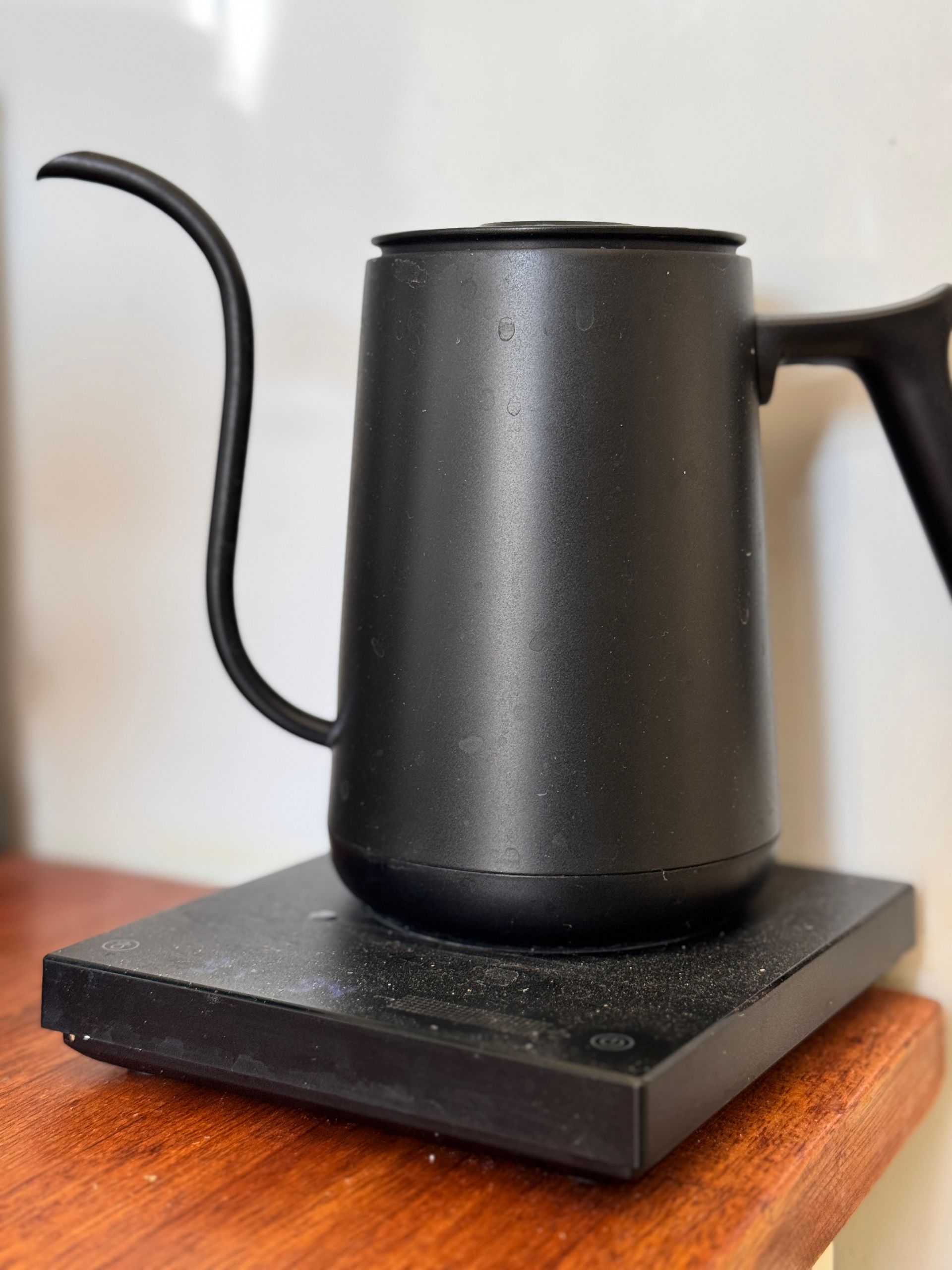 Handle build: Slight flex or plastic feel; not as robust as higher-end competitors. However, the price dictates that of course. The main issue is the spout design means that you can quite easily hit the side of your dripper if you are pouring from a low height. This needs some adjustment from your pouring-technique.