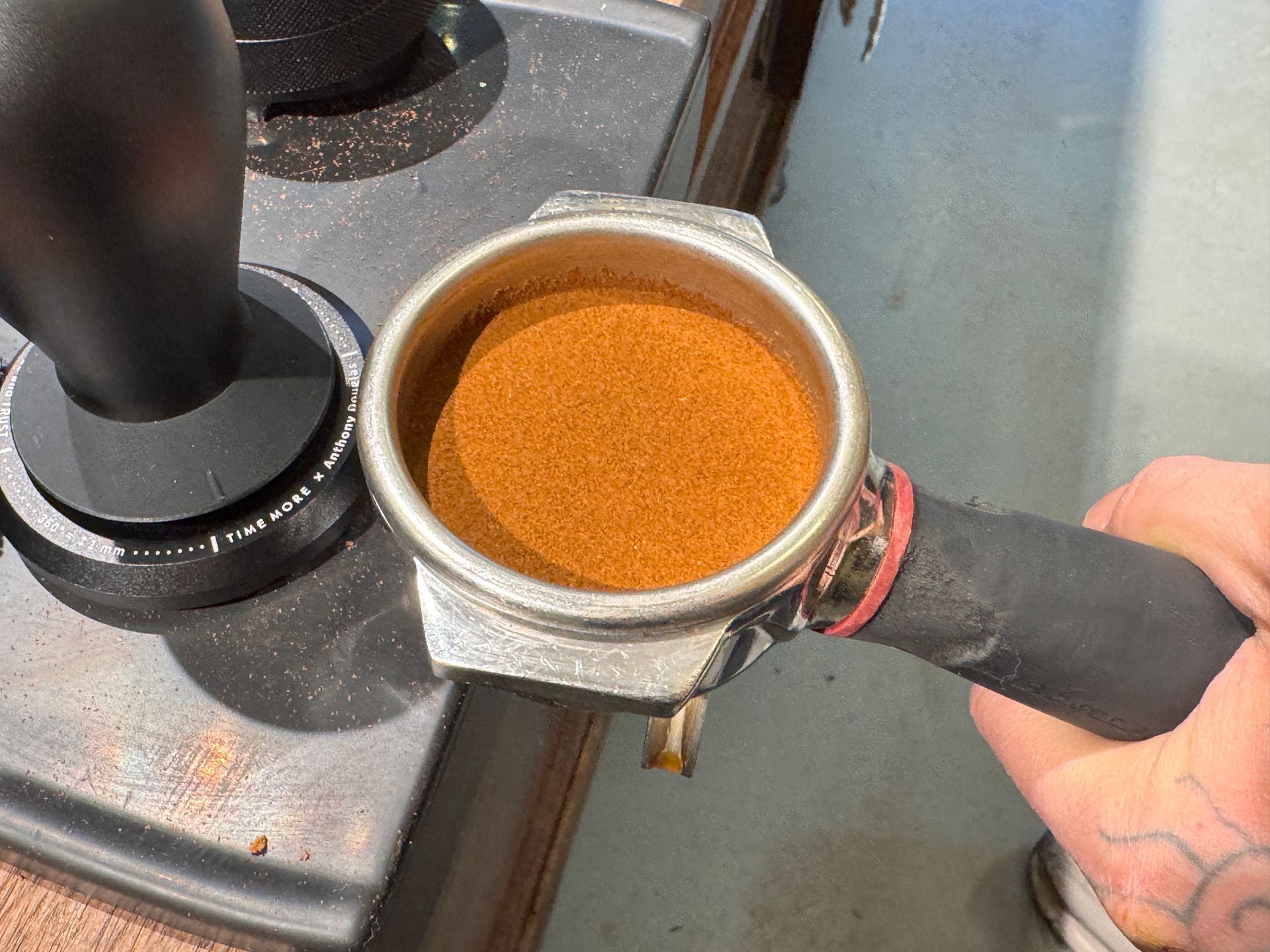 This immediately changed the consistency of my shots. The sour edges that occasionally crept in — particularly with lighter roasts where even minor channeling is punishing — disappeared. The flow through the puck became what it is supposed to be: even, controlled, predictable.